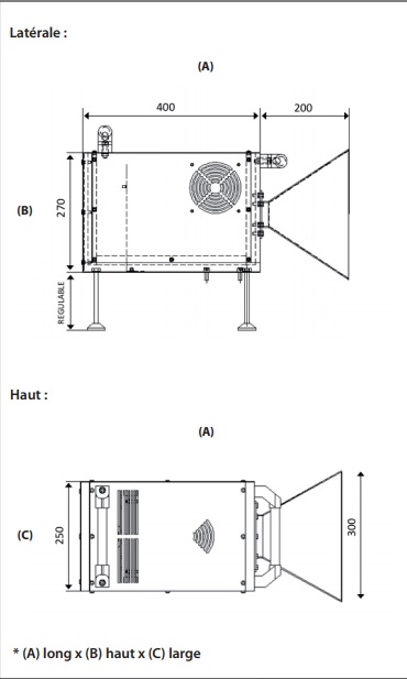 - Dimensions du bâti : 400 x 270 x 250 mm