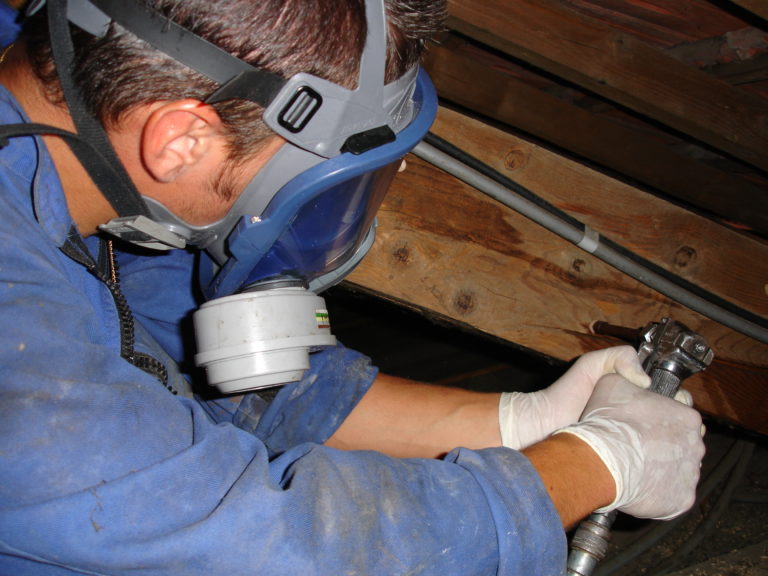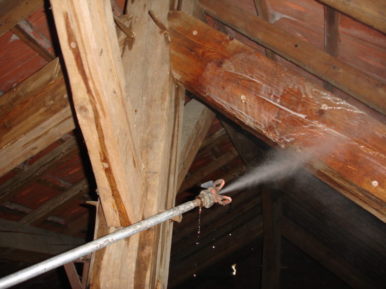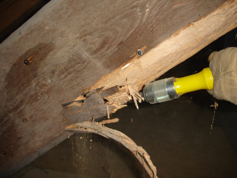 - Traitement curatif des bois par injection avec injecteurs (traitement traditionnel en 5 étapes : sondage des bois, bûchage des pièces de bois attaquées, brossage et dépoussiérage, injection du produit et enfin application du produit en surface),